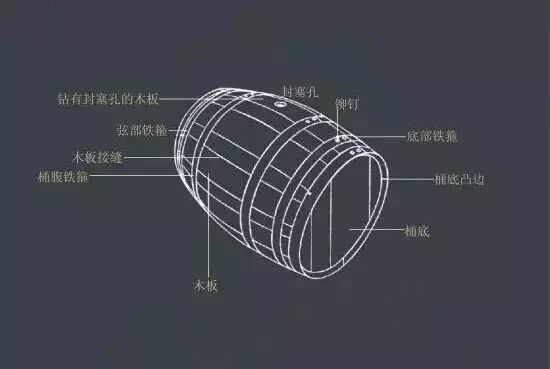 橡木桶由好幾個部分組成,而且每一個部分都有自己的名字。關(guān)于各組成部分的名稱,我們一起通過下面這張圖來了解一下吧。